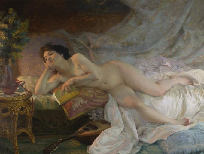 | Keywords: Ernest Edouard Martens - La derniere page du roman.jpg Artwork Ernest-Édouard Martens 1865 “1926 1903 oil on canvas cm 97 103 5 http //archive org/stream/catalogueillustr1903soci page/152/mode/2up Salon de 1903 http //www invaluable com/auction-lot/ernest-edouard-martens-paris -1865-1965-la-lect-300-c-472ebb8dcb object history exhibition history credit line signed bottom left E MARTENS 1903 accession number i allday ru Uploaded with UploadWizard Painters from France Paintings of nude recumbent females String instruments in art 1903 paintings PD-old-auto-1923 1926 |