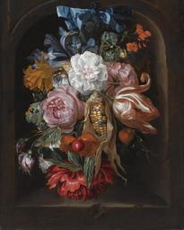 Keywords: Ernst Stuven - Tulpe, Iris, andere Blumen und ein Maiskolben in eine Niesche.jpg Artwork Creator Ernst Stuven oil canvas cm 44 8 36 object history With Richard Green London 1992 as by J Rotius ;<br/>With Johnny van Haeften London 1992/3;<br/>Private collection Leeuwarden;<br/>With Johnny van Haeften London by 2005 credit line accession number http //www sothebys com/de/auctions/ecatalogue/2008/old-master-paintings-am1057/lot 42 html Sotheby's Amsterdam 2008 11 11 lot 42 PD-old-100 Ernst Stuven Still life paintings of flowers 18th-century still life paintings Images from Sotheby's |