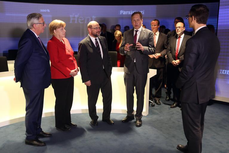 MAKE A MEME View Large Image European Commission President Jean-Claude Juncker, German Chancellor Angela Merkel, Martin Schulz, president of the European Union Parliament, and Frank Piplat, head of the information office of the European Parliament in Germany, ...