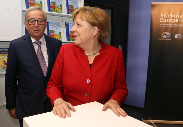 | Keywords: berlin germany groupshot people indoor BERLIN, GERMANY - MAY 12: (L to R) European Commission President Jean-Claude Juncker (L) and German Chancellor Angela Merkel participate in the re-opening of the European House and in the inauguration of "Europa Experience The Exhibition" in the European House Berlin. BERLIN, GERMANY - MAY 12: (L to R) European Commission President Jean-Claude Juncker (L) and German Chancellor Angela Merkel participate in the re-opening of the European House and in the inauguration of "Europa Experience The Exhibition" in the European House Berlin. |