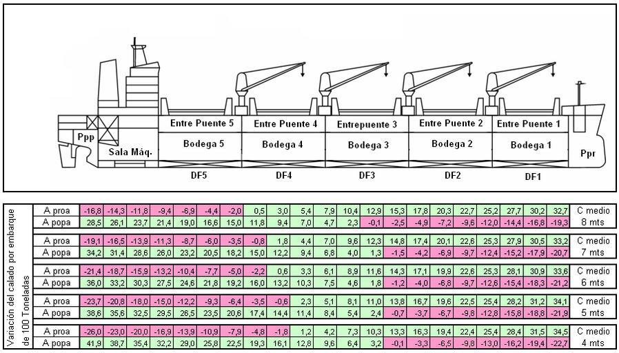 | Keywords: EscalaAsiento.PNG ES Escalas de asiento EN Trimming scale Own 2007-08 Claudio Elias Escala de asiento para un buque NN variación del calado en proa y popa para embarque de 100 toneladas Números negativos indican disminución de calado números positivos aumento Naval architecture |
