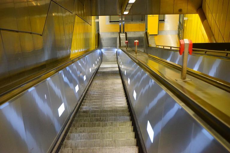 Keywords: escalator stairs handrails means of rail transport roller platform gradually underground down