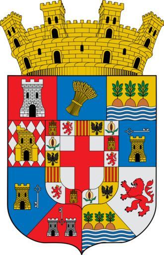 | Keywords: Escudo de la Provincia de Almería.svg Escudo de la provincia de Almería España Escudo cuartelado de siete 1º de gules un castillo de plata aclarado y mazonado de Sable que es de Berja ; 2º de azur unas gavillas de trigo de oro que es de Canjáyar ; 3º tres montes en su color cimados de matas de ortigas sobre ondas de mar de azur y plata que es de Cuevas de Almanzora ; 4º losanjado de gules y plata y brochante sobre todo una torre albarrana desmochada de oro que es de Gergal ; 5º de azur un castillo de oro surmontado de una llave de plata que es de Huércal-Overa ; 6º de azur el castillo de oro siniestrado de una llave de plata que es de Purchena ; 7º de plata un león de gules armado de sable que es de Sorbas ;Entado en punta partida 1ºde gules una llave de plata colocada en palo y acostada de dos torres del mismo metal mazonadas y aclaradas de sable que es el de Vera ; 2ºde oro tres montes en su color cimados de matas de ortigas de sínople sobre ondas de azur y plata que es el de Vélez-Rubio Sobre el todo escusón formado por el escudo de la capital en campo de plata la Cruz de Génova de gules y bordura componada de Castilla León Aragón;Navarra aguila negra y Granada Timbre Corona mural Aprobado por la Diputación Provincial en sesión plenaria de 29 de Julio de 1925 http //www fortunecity com/victorian/prado/203/of_andal htm Escudo de las provincias de Andalucía Own 2007-12-13 Miguillen Coat of arms of Almería province Almeria SVG coats of arms of Spain Almeria |
