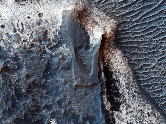 | Keywords: mars nasa jpl mro university of arizona universityofarizona landscape science geology texture animal outdoor Deposits along the Northern Wall of Melas Chasma – Some of the wall rock deposits are made up of sulfates, and others contain clays. www.uahirise.org/ESP_045960_1705 Deposits along the Northern Wall of Melas Chasma – Some of the wall rock deposits are made up of sulfates, and others contain clays. www.uahirise.org/ESP_045960_1705 | ||||