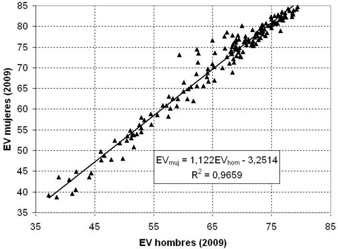 | Keywords: EsperanzaVida hombres mujer.png en Life exp female vs male 2009 sample 166 countries Source https //www cia gov/library/publications/the-world-factbook/fields/2102 html Life expancy CIA factbook 2009 2011-07 own Davius cc-zero Uploaded with UploadWizard Life expectancy charts |