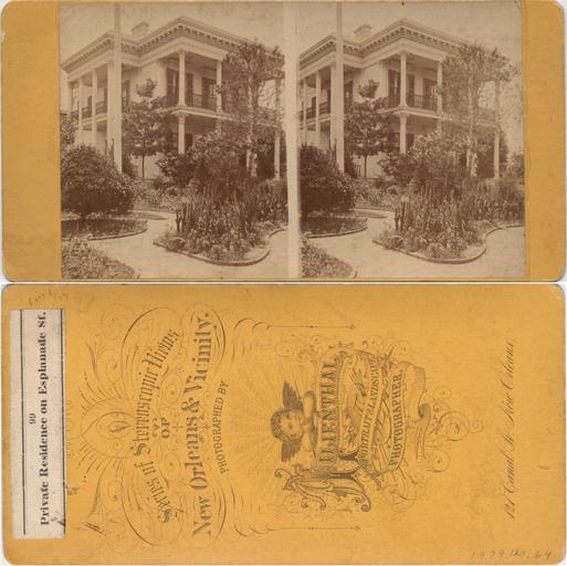Keywords: Esplanade Avenue House Stereo Card Lilienthal.jpeg parallel yes New Orleans 19th century stereocard front and back Private Residence on Esplanade St Stereocard photograph by Theo Lilienthal Photographer 121 Canal Street New Orleans 99 in series of Stereoscopic Views of New Orleans Vicinity Via http //popartmachine com/item/pop_art/D10015-LSM_ 1979 120 064/THEODORE-LILIENTHAL-PRIVATE-RESIDENCE-ON-ESPLANADE-STREET-CA-1880 Not dated c 1880s Theodore Lilienthal d 1894 PD-Old Stereo cards of New Orleans Esplanade Avenue New Orleans New Orleans in the 19th century Theodore Lilienthal Houses in New Orleans Scans of both sides |