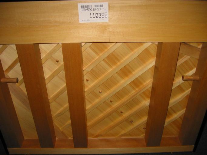 Keywords: EssexEUP123.jpg Essex Rasten This photograph shows the back of an upright piano in the Essex product line by Steinway and Sons KarlKunde 2007-11 KarlKunde Own Upright pianos Boston and Essex pianos