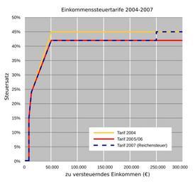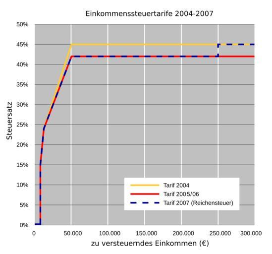 | Keywords: ESt-Tarife04-07 sx1.svg Sioux Reworked version of de Image ESt-Tarife04-07-v2 svg by Sioux Beschreibung Original-Datei Bildbeschreibung Einkommensteuertarife Deutschland 2004-2007 Quelle Selbst erstellt mit Informationen des BMJ und BMF Fotograf/Zeichner cktu Datum 15 06 2006 Sonstiges Ähnliches Bild ESt-Tarife existiert bereits ich finde meine Version jedoch besser Allerdings habe ich eine Kurve weniger de Reichensteuer cktu Tax in Germany | ||||