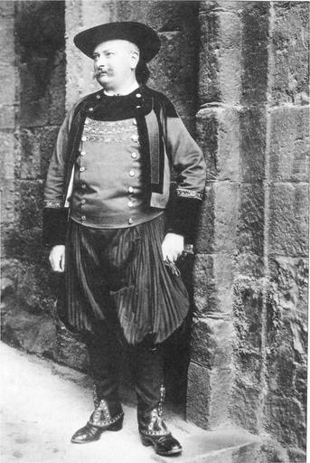| Keywords: Estourbeillon.jpg en Marquis de Estourbeillon dressed in Breton national costume at the Pan-Celtic Congress A Book of Mad Celts John Wickens 1904 other versions PD-old Régis de l'Estourbeillon Celtic Neopaganism 1904 portrait photographs Male 20th-century black and white portrait photographs of standing men at full length 1904 Traditional costumes from Pays Glazik |