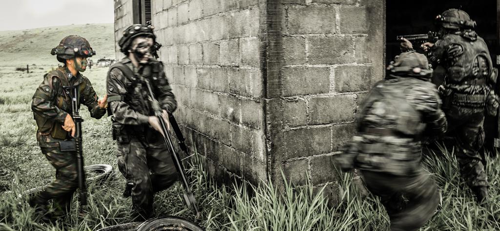 Keywords: outdoor Cada Grupo de Combate (GC) na Manobra Escolar 2016, conta com um atendente de saúde. Flagrante da aluna da EsSLog realizando a progressão em uma localidade. foto: Sd Mattos - CEP/FDC Cada Grupo de Combate (GC) na Manobra Escolar 2016, conta com um atendente de saúde. Flagrante da aluna da EsSLog realizando a progressão em uma localidade. foto: Sd Mattos - CEP/FDC |