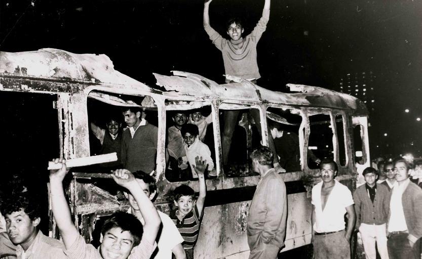 Keywords: Estudiantes sobre cammión quemado (A68).JPG mexican students on a burned bus my personal archive july the 28th 1968 Marcel·lí Perelló free Demonstrations and protests by students in Mexico in 1968 Crowds Group photographs Violence Group portraits |