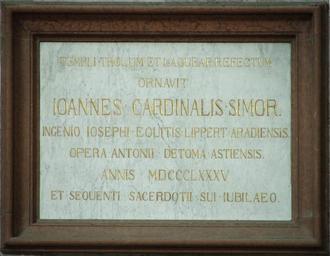 Keywords: Esztergom bazilika Simor tábla.JPG hu Simor János emléktáblája Own Villy Plaques in Esztergom Plaques to bishops in Hungary Esztergom Cathedral 1885 in Hungary Latin inscriptions in Hungary János Simor