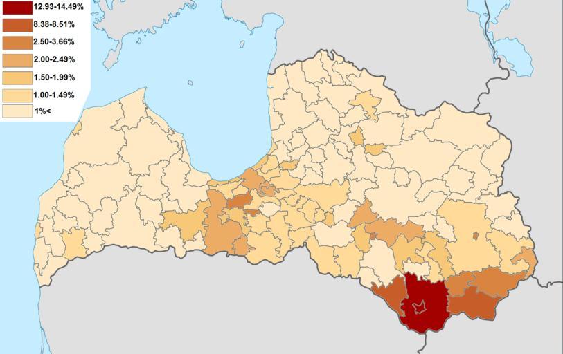 | Keywords: Ethnic Poles in Latvia share 2010.png ethnographic map en Ethnic Poles in Latvia share used Iedzivotaju skaits pašvaldibas pec nacionala sastava Datums 01 01 2010 statistic data and File 2000px-Latvia_location_map svg png map own Bogomolov PL 2010-09-27 Maps of ethnic groups in Latvia Maps of the Poles Polish minority in Latvia |