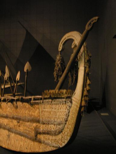 Keywords: Ethnologisches Museum Dahlem Berlin Mai 2006 015.jpg Detail of a blue-ocean ship from Luf off the coast of Papua New Guinea This boat was constructed in 1890 and brought to Berlin in 1904 It was used by the native population of Luf for trade and warfare For longer journeys into the open sea it could transport up to 50 persons A platform was used to transport goods To stabilise the ship depending on the winds the crews would move to different locations on the ship the platform and a small bridge The ship itself was carved out of a single large treetrunk Plant adhesive was used for insulation against the water The whole ship was constructed without a single nail all parts are held together with plant material The rectangular sails are typical for the region but unusual for the wider Oceanic region This ship is the last of its kind and kept at the Ethnologisches Museum Berlin-Dahlem The population of Luf became extinct in 1940 own 2006-05 Gryffindor I release it into the public domain Ship from Luf Ethnological Museum Berlin |
