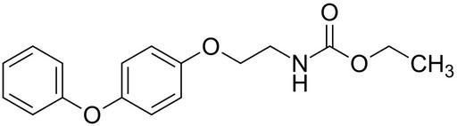 | Keywords: Ethyl (2-(4-phenoxyphenoxy)ethyl)carbamate 200.svg  validSVG Structure of ethyl 2- 4-phenoxyphenoxy ethyl carbamate Own 2014-04-30 Emeldir <span class signature-talk >talk</span> Chemical structure verified https //upload wikimedia org/wikipedia/commons/3/33/Ethyl_ 282- 284-phenoxyphenoxy 29ethyl 29carbamate_200 svg 1S/C17H19NO4/c1-2-20-17 19 18-12-13-21-14-8-10-16 11-9-14 22-15-6-4-3-5-7-15/h3-11H 2 12-13H2 1H3 H 18 19 HJUFTIJOISQSKQ-UHFFFAOYSA-N 79127-80-3 Synonyms <small> 2- 4-Phenoxyphenoxy ethyl carbamic acid ethyl ester Carbamic acid N-2- 4-phenoxyphenoxy ethyl- ethyl ester Comply R Ethyl 2- 4-phenoxy phenoxy ethyl carbamate Ethyl 2- 4-phenoxyphenoxy ethylaminoformate Fenoxycarb Insega Insegar R Logic R Pictyl R Precision R Torus R Varikill R </small> PD-chem Carbamates Phenoxybenzenes Ethyl compounds |