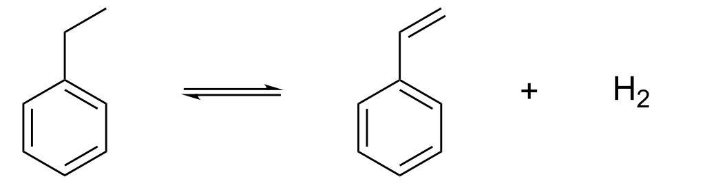 Keywords: Ethylbenzene-styrene interconversion.svg Chemical reaction showing interconversion between ethylbenzene and styrene Own 15 10 25 October 2010 UTC Edgar181 <span class signature-talk >talk</span> Reactions of ethylbenzene Syntheses of styrene |