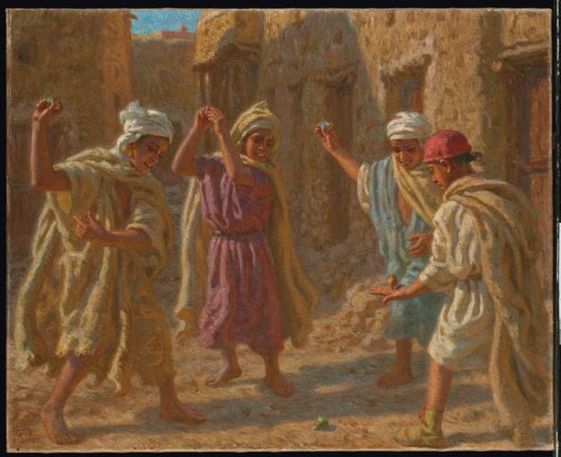 | Keywords: Étienne Dinet (French, 1861-1929), Le jeu de toupies, signed 'E. Dinet' and in Arabic (lower left). Oil on canvas, (81 x 100 cm.). circa 1924. Christie's.jpg Le jeu de toupies oil on canvas painting by Étienne Dinet 81 x 100 cm circa 1924 Christie's 1924 Étienne Dinet French 1861-1929 Orientalist paintings by Étienne Dinet PD-old Images from Christie's | ||||