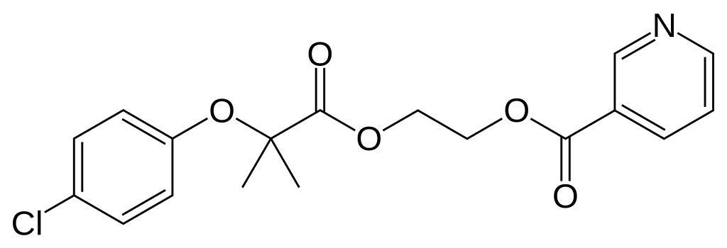 Keywords: Etofibrate.svg Skeletal formula of etofibrate Created using http //www acdlabs com/download/chemsk html ACD/ChemSketch 10 0 and Inkscape Own 2007-08-15 Fvasconcellos 16 00 15 August 2007 UTC Fibrates Prodrugs Nicotinates