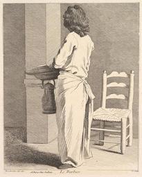 Keywords: Études prises dans le bas peuple ou les Cris de Paris - Le Barbier.jpg The Barber A man seen full-length turned to the left and looking away carrying a basin and a pitcher; a chair on the right 1737 Etching with some engraving image 9 1/8 x 7 1/4 in 23 1 x 18 4 cm sheet 9 5/16 x 7 5/16 in 23 7 x 18 5 cm Institution Metropolitan Museum of Art 3354324 object history exhibition history other versions 399122 Below image on left Bouchardon inv del ; centered Le Barbier ; on right Cx Sculp Bottom left A Paris Chés Joullain credit line Harris Brisbane Dick Fund 1953 accession number 53 600 588 22 PD-100 Études prises dans le bas peuple ou les Cris de Paris Etchings of Paris Etchings in the Metropolitan Museum of Art Images of Paris from the Metropolitan Museum of Art Barbers in art 1737 Barbers from France 1737 Chairs in art Chairs in Paris Shaving basins 1737