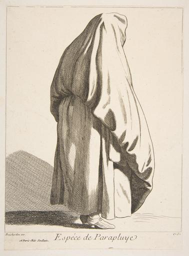 | Keywords: Études prises dans le bas peuple ou les Cris de Paris - Espéce de Parapluye.jpg A Sort of Umbrella A woman wearing her overskirt over her head to shelter herself from the rain; she is seen standing in profile to the right 1746 Etching with some engraving image 8 9/16 x 6 3/4 in 21 8 x 17 1 cm sheet 9 1/4 x 6 13/16 in 23 5 x 17 3 cm Institution Metropolitan Museum of Art 3353866 object history exhibition history other versions 398356 Below image on left Bouchardon inv ; centered Espéce de Parapluye ; on right CxSx Bottom left A Paris Chés Joullain credit line Harris Brisbane Dick Fund 1953 accession number 53 600 588 60 PD-100 Études prises dans le bas peuple ou les Cris de Paris Etchings of Paris Etchings in the Metropolitan Museum of Art Images of Paris from the Metropolitan Museum of Art Umbrellas Peplums |