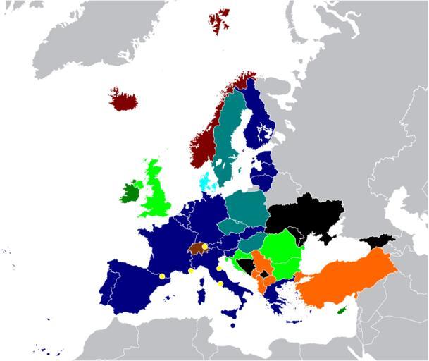 | Keywords: EU-Agreements-2011-06-03.svg See http //en wikipedia org/wiki/European_integration Membership_in_European_Union_agreements legend 000080 EU Schengen EMU CSDP All agreements 17 c 008080 EU Schengen CSDP 4 c 00FFFF EU Schengen 1 c 008000 EU EMU CSDP 2 c 00FF00 EU CSDP 3 c 800000 EEA Schengen 2 c 803300 Schengen Bilateral treaties 1 c FF6600 Candidates some agreements 5 c F5FF52 Microstates some agreements 5 c 000000 SAA 5 c grey some agreements 0 c Countries signatories of main European Union Agreements For an explanation of this map see en European integration Membership in European Union agreements If you wish to alter the colours on this SVG map download http //www inkscape org/ Inkscape and edit the file using that programme It's very easy SVGs look sharper than PNGs EU-Agreements svg 2011-03-06 12 32 UTC EU-Agreements svg Danny Rowe Danrowe wikipedia en derivative work P andrei <span class signature-talk >talk</span> Updated the map Changed some of the colors and information Inkscape EU-Agreements svg PD-user-w Original upload log This image is a derivative work of the following images File EU-Agreements svg licensed with PD-user-w 2010-11-26T13 24 06Z File Upload Bot Magnus Manske 655x674 426259 Bytes <nowiki> en wikipedia subst CURRENTYEAR subst CURRENTMONTHNAME subst CURRENTDAY If you wish to alter the colours on this SVG map download http //www</nowiki> Uploaded with derivativeFX Images requiring an update Maps of the Council of Europe Maps of the European Union |