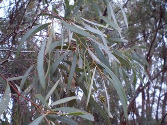 | Keywords: Eucalyptus polybractea leaf.JPG en Eucalyptus polybractea Blue-leaf Mallee leaf and capsules West Wyalong New South Wales Australia own John Moss 2008-08 Eucalyptus polybractea Flora of Australia Myrtaceae in the Southern Hemisphere in August |