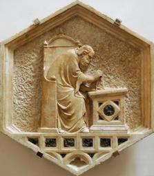 | Keywords: Euclid Pisano OPA Florence.jpg Euclid or the Architecture Marble panel from the East side lower basement of the bell tower of Florence Italy Museo dell'Opera del Duomo Euclide ou l'Architecture Panneau en marbre provenant de la façade est registre inférieur du campanile de Florence Euclide o l'Architecttura Marmo proviene dal lato nord del campanile di Firenze basamento inferiore Museo dell'Opera del Duomo Jastrow own picture 1334 “1336 Nino Pisano Italian active ca 1343-1368 Public Domain Nino Pisano Euclid Reliefs of the Giotto's Belltower Compasses in art Personifications of Mathematics Geometry |