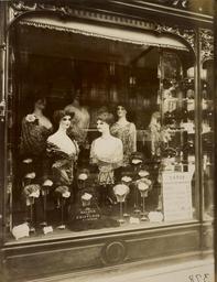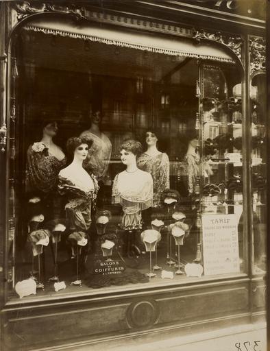 Keywords: Eugène Atget, Boulevard de Strasbourg - Getty Museum.jpg Artwork en When creating this photograph of a hairdresser's shop window Eugène Atget documented the fashionable pompadours and upsweeps of the period as well as the popular plunging necklines and draping shawls This establishment offered a wide variety of hairstyling services from cutting to dressing and a selection of wigs both full and partial To make the shop's services and wares more alluring the mannequins wear elaborate cosmetics and filmy delicate fabrics Beginning in the mid-1800s when haute couture first appeared Paris dictated the chic mode in women's styles Fashion plates and journals throughout Europe and America illustrated French garments and accessories Although Atget specifically avoided photographing subjects associated with fashion and individual display this composition reveals his fascination for how shopkeepers exhibited their wares 1912 Gelatin silver chloride printing-out paper print Image 23 x 17 9 cm 9 1/16 x 7 1/16 in Institution Getty Museum object history exhibition history other versions 69980 Markings Atget Paris wet stamp verso print Inscription Inscribed verso print - - Bd de Strasbourg ; negative number inscribed in negative credit line accession number 90 XM 64 20 PD-old-auto 1927 1912 in Paris 1912 photographs Photographs of Paris by Eugène Atget Photographs in the Getty Museum Boulevard de Strasbourg Paris Hairdressing shops in Paris Shop windows in Paris Fashion in 1912 |