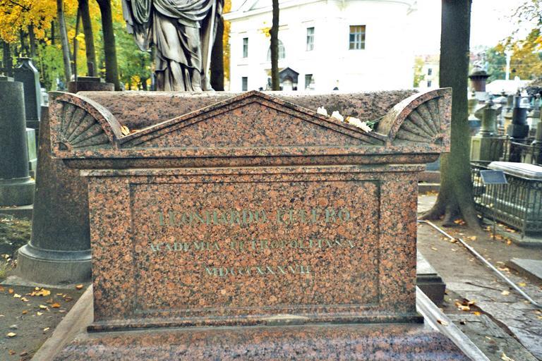 | Keywords: Euler Grave at Alexander Nevsky Monastry.jpg 2005-06-28 own assumed Berteun The grave of Lonard Euler on in Alexander Nevsky Monastry La tumba de Leonhard Euler en el Monasterio de Alexander Nevsky s XVIII адг обие Леона да Эйле а на Лаза евском кладбище Александ о- евской лав ы « ек ополь XVIII в » Г анитный са кофаг 1837г Date 20021006 Additional information The stone says Leonhardo Eulero / Academia Petropolitana // MDCCCXXXVII 1837 Not the year he died But what Interestingly his grave is at the lesser important section of the monastry Dostoevsky and Tchaikovsky can be found at the more important part External tomb chests in Russia Leonhard Euler Lazarev Cemetery |
