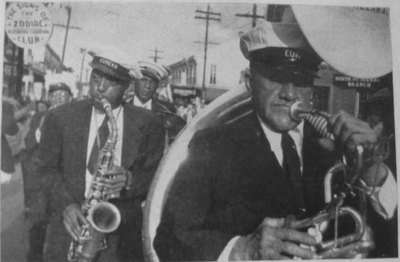 | Keywords: EurekaZodiacKubrick.JPG Eureka Brass Band parading New Orleans 1950 Event for Signs of the Zodiac Social Aid Pleasure Club Sousaphone player at front right is Joseph Red Clark Photograph by Stanley Kubrick published in Look Magazine 6 June 1950 Photographed from original magazine by Infrogmation <span class signature-talk >talk</span> Note Higher quality scan would be welcome 1950 Stanley Kurbrick PD-Look http //www loc gov/rr/print/res/378_kubr html Eureka Brass Band Stanley Kubrick Music in 1950 1950 in New Orleans men at work in New Orleans |