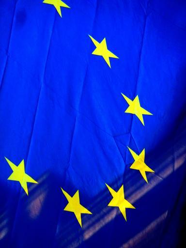 Keywords: europe flag europe blue emblem recognize flag flutter hoisted sky note national emblem mark country symbol landmark blow wind