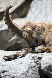 Keywords: european gemse falling asleep relaxed position large antler horn fur coat