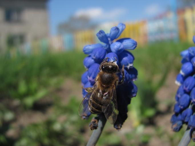 Keywords: european honeybee flower macro insect bloom blossom garden pollen honey tassel hyacinth muscari comosum