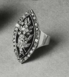 Keywords: European - Marquise Ring with Floral Decor - Walters 571760 - Three Quarter.jpg A marquise bezel with tied floral spray over foiled enamel ground set with diamonds century 18 gold enamel diamond silver cm 2 5 accession number 57 1760 15614 Henry Walters Baltimore date and mode of acquisition unknown Laura F Delano New York date of acquisition unknown by gift Walters Art Museum Gift of Laura F Delano 1946 Jewelry - Ancient to Modern The Walters Art Gallery Baltimore 1979-1980 place of origin Europe Walters Art Museum license Jewellery in the Walters Art Museum Art from Europe Media contributed by the Walters Art Museum needs category review |