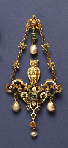 | Keywords: European - Owl Pendant - Walters 44481.jpg This pendant was formerly thought to be from the 16th century because of its late Renaissance-style enameled gold strapwork baroque pearls and the square-cut gems in box settings century 19 gold enamel tourmaline ruby diamond pearl cm 11 accession number 44 481 32150 Henry Walters Baltimore date and mode of acquisition unknown Walters Art Gallery 1931 by bequest Acquired by Henry Walters World of Wonder The Walters Art Gallery Baltimore 1971-1972 Jewelry - Ancient to Modern The Walters Art Gallery Baltimore 1979-1980 Objects of Adornment Five Thousand Years of Jewelry from the Walters Art Gallery Baltimore Cooper-Hewitt National Design Museum New York; Chrysler Museum of Art Norfolk; Carnegie Museum of Art Pittsburgh; San Antonio Museum of Art San Antonio; Philbrook Museum of Art Tulsa; Honolulu Academy of Arts Honolulu; New Orleans Museum of Art New Orleans; Milwaukee Art Museum Milwaukee; Minneapolis Institute of Arts Minneapolis; Toledo Museum of Art Toledo; The John and Mable Ringling Museum of Art Sarasota 1984-1987 Jewelry from the Walters Art Museum and the Zucker Family Collection The Walters Art Gallery Baltimore 1987 place of origin west Europe Walters Art Museum license Jewellery in the Walters Art Museum Art from Europe Media contributed by the Walters Art Museum needs artist update 19th-century jewellery Owls in art |