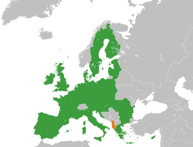 | Keywords: European Union Albania Locator.svg en The European Union and Albania e3801c Albanie 3c9d3c UE à 28 Own inkscape 2008-05-12 S Solberg J <gallery> File European Union Albania Locator with internal borders svg fr UE avec les frontières internes </gallery> Bilateral maps of the European Union Bilateral maps of Albania SVG maps of Europe |