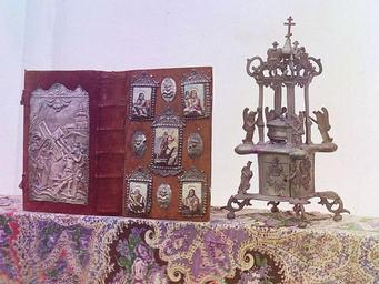 Keywords: Evangelie i darokhranitelʹnitsa v tserkvi Rozhdestva Khristova.jpg en gospel and tabernacle in The Nativity of Christ Church in Krokhino Photo by Prokudin-Gorsky July 1909 ru Евангелие и да ох анительница в Це кви Рождества Х истова в К охино Фотог афия С П окудина-Го ского июль 1909 Sergei Mikhailovich Prokudin-Gorskii Collection Library of Congress http //www loc gov/pictures/collection/prok/item/prk2000000192/ Creator Sergey Prokudin-Gorsky Digital color composite made for the Library by Blaise Agüera y Arcas 2004 Photo 1906 Digital composite 2004 PD-Russia PD-1923 Photos of Belozersk Uezd by Sergey Prokudin-Gorsky Krokhino Church of the Nativity of Christ Krokhino Gospel Books covers from Russia Krokhino Tabernacles from Russia Krokhino