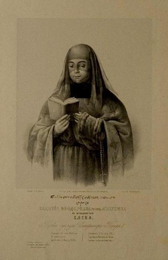 | Keywords: Evdokia Lopukhina by P.Borel.jpg Бо ель П Ф По т ет Евдокии Федо овны Лопухиной в монашестве Елены Эстамп - 1854 - 1 л Литог афия; 22 5х19 5; 56 8х37 5 см http //www nlr ru/res/refer/romanov/article php num 44 1855 Бо ель Пет Федо ович Romanovs by Petr Borel Eudoxia Lopukhina as nun parsuna Files uploaded by Shakko from various sources PD-Art |