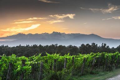 Keywords: evening tuscany grape field nature green outdoors landscape sky morning tree wine italy clouds wide farm