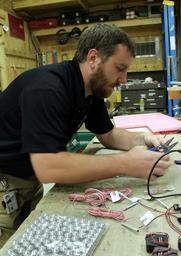 Keywords: Everything but the ‘BOOM’ 130820-D-ZQ898-765.jpg en Combined Joint Task Force Paladin fabricator Trace Yates splices wires for an improvised explosive device pressure plate trigger training aid at the CJTF Paladin Fabrication Shop on Bagram Air Field Afghanistan Aug 20 The ball bearings and inert blasting caps are also used to replicate various IED devices found on the battlefield The fabrication shop has produced more than 17 000 training aids for use by warfighters throughout Afghanistan since 2009 Photo by Ed Drohan Combined Joint Task Force Paladin Public Affairs 2013-08-20 Ed Drohan https //www dvidshub net/image/1000519 130820-D-ZQ898-765 2013-08-22 01 59 BAGRAM AIR FIELD AF PD-USGov Bagram Air Base Combined Joint Task Force Paladin Images from DoD uploaded by Fæ |