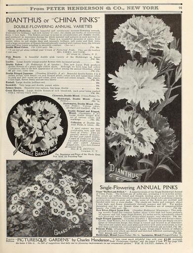 | Keywords: Everything for the garden (16390019382).jpg and Prices of the Hardy Grass <br> Pink Seed see Preceding Page <br> Single Flowering ANNUAL PINKS <br> Giant Ruffled and Frilled A superior strain of the Single Heddewigii Annual <br> or China Pinks The flowers are of noble size averaging 3 to 4 inches across <br> The petals are ruffled frilled and fringed lending grace and beauty to the <br> gorgeously colored blossoms which range from dark blood-red to glowing crimson <br> carmine-rose salmon-pink and white; some of the flowers are mottled and <br> blended with two or more shades The plants are bushy and compact about <br> 1 foot high and flower abundantly through summer and fall For garden <br> decoration and for cut flowers these new Dianthus are of unapproachable <br> beauty Per 1 000 seeds 50c Pkt 10c <br> New Silver-Edged Japan Pink Dianthus Heddewigii Marginatus This strik- <br> ing novelty forms fine compact bushes about 1 foot high and bears profusely <br> all summer and fall large single flowers 2 inches across remarkably colored <br> rich blood-red with a distinct silvery-white margin; very effective Pkt 10c <br> Single Fringed Japanese Dianthus Mirabilis Remarkable and distinct strain <br> Lovely large flowers 3 to 5 inches in diameter The margins are deeply cut into <br> strips or thread-like fringe; this fringe is turned and twisted in all directions <br> The colors are varied from pure white and white with pink or red zones to rose <br> and deep purplish-red even striped and mottled flowers are included Pkt 10c <br> Princess Pinks Dianthus Punctatus Large fringe-edged flowers of different <br> ground colors over which are dotted and blotched different contrasting colors <br> Very unique and beautiful Pkt 10c <br> Heddewigii Mixed Japan Pinks Pkt 5c Laciniatus Mixed Fringed Pinks 5c <br> EdS PICTURESQUE GARDENS by Charles Henderson <br> the better I like it <br> I have spent much delightful time with your <br> book 'Picturesque Gardens' and the longer I look <br> So full of suggestions that help one in planning improvements in our ornamental garden WM H GATES Auburn <br> M 00 postpaid <br> P ' See page 199 <br> N Y 43874883 149634 78295 Page 91 Text http //www biodiversitylibrary org/page/43874883 c1915 10 5962/bhl title 78295 Henry G Gilbert Nursery and Seed Trade Catalog Collection ; Peter Henderson Co Biodiversity Heritage Library Everything for the garden 1915 Garden Stories Books Bulbs Plants Catalogs Equipment and supplies Flowers Gardening Lawn mowers Seeds U S Department of Agriculture National Agricultural Library bhl page 43874883 dc identifier http //biodiversitylibrary org/page/43874883 bhlGardenStories BHLinbloom bulbs plants u s department of agriculture national agricultural library bhlgardenstories bhlinbloom Information field Flickr posted date ISOdate 2015-01-28 Check categories 2015 August 25 CC-BY-2 0 BioDivLibrary https //flickr com/photos/61021753 N02/16390019382 2015-08-25 02 52 43 cc-by-2 0 PD-old-70-1923 Everything for the garden 1915 Photos uploaded from Flickr by Fæ using a script |