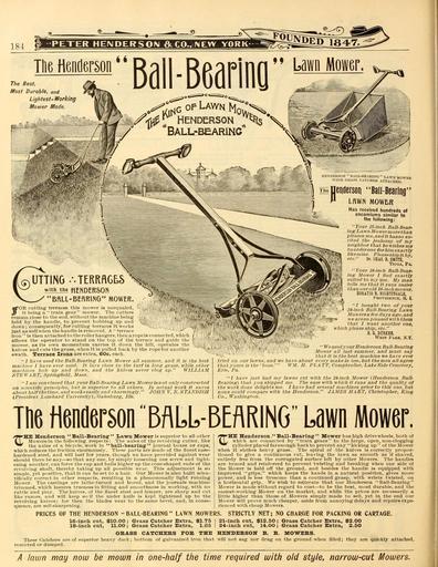 MAKE A MEME View Large Image Everything for the garden (16666932480).jpg 184 <br> ˘PETER HENDERSON 6tC0 NEW YORK <br> TUG Henderson <br> The Best <br> Most Durable and <br> Lightest- Working <br> Mower Made <br> Ball-Bearino <br> f f <br> Lawn Mower <br> ' HENDERSON ˘ ...