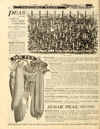 | Keywords: Everything for the garden (Page 58) (16621210326).jpg DBAS <br> - - Continued <br> LATE or <br> HAIN CROP <br> VARIETIES <br> Those marked ' are Wrinkled <br> Peas <br> Your Juno Peas have been <br> called the BEST OiV EARTH <br> by many friends who have par- <br> taken of them ” Thomas J <br> Brown Washington D C <br> June 22 '9G <br> CHAMPION OF ENG- <br> LAND Tlie true old <br> popular favorite of such <br> luscious qualit3' ” a tall <br> late variety ” with large <br> pods and large wrinkled <br> marrow peas 10c ipt <br> 15c pt 25c qt 11 25 <br> peck 4 50 bushel <br> 8TBATA0BM PEAS <br> STRATAGEM By many this variety is considered the best of the English <br> It is a dwarf wrinkled blue marrow a very heavy cropper and produces <br> well-filled pods of excellent flavor Height 2 feet See ait 10c 4 pt <br> 20c pt 30c qt 1 50 peck 5 00 bushel <br> ™¦EVER-BEARING A continuous-bearing variety which gives it especial <br> value for late summer and autumn use Height 3 feet; foliage large <br> Pods 3 to 4 inches long producing 6 to 8 large wrinkled peas half an inch <br> and over in diatneter It should he sown considerably thinner than other <br> kinds else the vines will become too crowded <br> 25c qt 1 25 peck 4 25 bushel <br> 10c 1 pt 15c pt <br> color size and <br> SG OO bushel <br> flavor See cut 10c i pt 20c pt 30c qt 1 75 peck <br> ™¦RELIANCE See novelties pages 16 and 17 20c i pt 35c pt 60c qt <br> PRIDE OF THE MARKET Is a strong-growing Pea 2 feet high wonder- <br> fully productive The pods are also of large size and handsome appearance <br> and the peas are of splendid quality lOc f pt 20c pt 30c qt 1 40 peck <br> S4 75 bushel <br> BLACK-EYED MARROWFAT An old-time favorite ; large handsome <br> pods; enormous cropper Height 5 feet 10c pt 20c qt 75c peck <br> 2 50 bushel <br> W HITE MARROWFAT Similar to above biit a little finer quality Height <br> 5 4 feet 10c pt 20c qt 75c peck 2 50 bushel <br> SUGAR PEAS <br> EDIBLE PODDED <br> MELTING SUGAR Grows to the height of 5 feet bears a profusion of large <br> broad pods which are so brittle that they snap without any string It should <br> be used in much the same way as a Wax Bean The pods when cooked are <br> very sweet and tender 15c pkt 25c pt 40c qt 2 50 peck <br> VERY DWARF SUGAR Unusually dwarf very similar in habit to the <br> American Wonder The pods are beautifully crimped are of unusual size for <br> such a small-growing sort and are of exquisite melting quality 15c ij pt <br> 25c pt 40c qt 2 50 peck <br> ™¦VICTORY Is a grand late variety of the Shropshire Hero class The <br> strong healthy branching vines are so vigorous that they must be <br> planted thinlj- in order to secure best results It prolongs the bearing <br> season of dwarf pefts as thoroughly as the succession now exists <br> among tall sorts right up to the time that Lima B ans come in It is <br> entirely free from mildew and is the peer of any variety for productiveness <br> while the flavor of the peas is absolutely beyond criticism It grows only <br> to a height of 3 feet so that it needs but little or no brushing The pod is <br> handsome and always well filled with from 8 to 10 peas of most attractive <br> PEAS BEANS and CORN we do NOT deliver free but will do so if 5c per pint or 10c per quart is added to ttie price 42383099 133997 66553 Page 58 Text http //www biodiversitylibrary org/page/42383099 1902 10 5962/bhl title 66553 Henry G Gilbert Nursery and Seed Trade Catalog Collection ; Peter Henderson Co Biodiversity Heritage Library Garden Stories Catalogs Flowers Peter Henderson Co Plants Ornamental Seed industry and trade Seeds Trade catalogs Vegetables U S Department of Agriculture National Agricultural Library bhl page 42383099 dc identifier http //biodiversitylibrary org/page/42383099 BHLinbloom peter henderson co plants ornamental u s department of agriculture national agricultural library bhlinbloom Information field Flickr posted date ISOdate 2015-02-25 PD-old-70-1923 Everything for the garden 1902 Photos uploaded from Flickr by Fæ using a script Files from the Biodiversity Heritage Library released as Attribution-NonCommercial-ShareAlike |