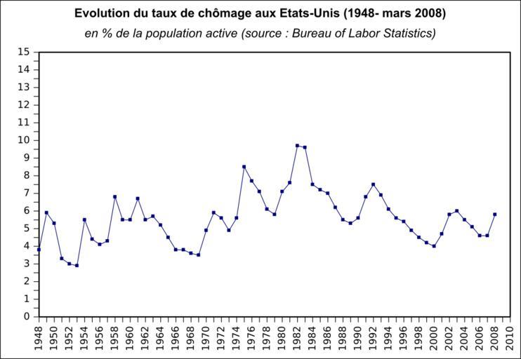 Keywords: Evolution chomage USA 1948-2008.svg fr Evolution du taux de chômage aux Etats-Unis 1948-2008 en de la population active Own Urban 2009-04-21 source Bureau of Labor Statistics http //data bls gov/PDQ/servlet/SurveyOutputServlet Databases Tables Calculators by Subject Unemployment rates in the United States Bureau of Labor Statistics |