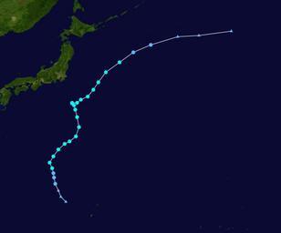 | Keywords: Ewiniar 2012 track.png Track map of Tropical Storm Ewiniar of the 2012 Pacific typhoon season The points show the location of the storm at 6-hour intervals The colour represents the storm's maximum sustained wind speeds as classified in the Saffir-Simpson Hurricane Scale see below and the shape of the data points represent the nature of the storm according to the legend below WPTC track map/Table Created using Wikipedia WikiProject Tropical cyclones/Tracks The background image is from NASA Tracking data is from http //www nrlmry navy mil/tcdat/tc12/WPAC/19W EWINIAR/trackfile txt NRL 2012-09-26 Keith Edkins 2012 Pacific typhoon season track maps Severe Tropical Storm Ewiniar 2012 |