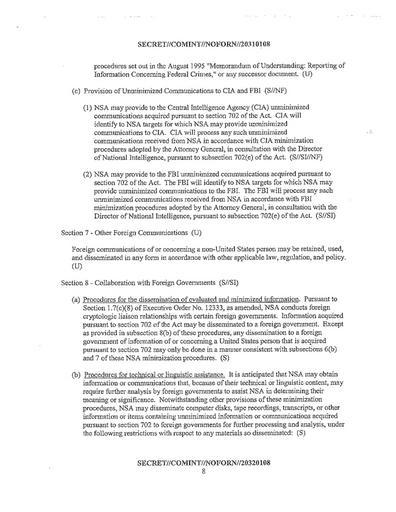 | Keywords: Exhibit-b-p8-normal.jpg EXHIBIT B - MINIMIZATION PROCEDURES USED BY THE NATIONAL SECURITY AGENCY IN CONNECTION WITH ACQUISITTIONS OF FOREIGN INTELLIGENCE INFORRMTION PURSUANT T0 SECTIGN 762 THE FOREIGN INTELLIGENCE SURVEILLANCE ACT OF 1978 AS AMENDED http //www guardian co uk/world/interactive/2013/jun/20/exhibit-b-nsa-procedures-document 2007-01-08 Eric H Holder Jr PD-EdictGov PD-USGov EXHIBIT B | ||||