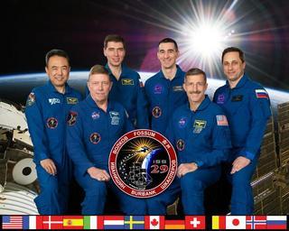 | Keywords: Expedition 29 crew portrait.jpg en Expedition 29 crew members take a break from training at NASA's Johnson Space Center to pose for a crew portrait Pictured on the front row are NASA astronauts Mike Fossum left commander; and Dan Burbank flight engineer Pictured from the left back row are Japan Aerospace Exploration Agency JAXA astronaut Satoshi Furukawa along with Russian cosmonauts Sergei Volkov Anatoly Ivanishin and Anton Shkaplerov all flight engineers http //spaceflight nasa gov/gallery/images/station/crew-29/html/iss029-s-002 html NASA/Robert Markowitz 2011-01-26 NASA-image JSC ISS029-S-002 PD-USGov ISS Expedition 29 Crew portraits of International Space Station expeditions Satoshi Furukawa Michael E Fossum Sergey Aleksandrovich Volkov Anatoli Ivanishin Daniel C Burbank Anton Shkaplerov |