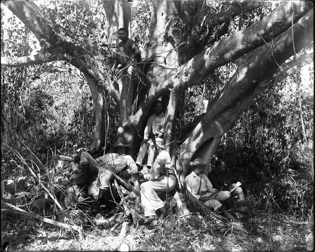| Keywords: botany expedition botanyexpedition 1898 1899 charles millspaugh charlesmillspaugh edward allen edwardallen edward isham jr. edwardishamjr jordan mott jr. jordanmottjr bermuda bahamas haiti jamaica puerto rico cuba yucatan central america centralamerica west indies westindies plant collecting plantcollecting blackandwhite monochrome outdoor tree plant black and white Expedition members, unidentified by name, with guns, rifles, seated in and around a large tree, Ficus rubiginosa. 1899.  Name of Expedition: Allison V. Armour Expedition Participants: Charles F. Millspaugh, Edward P. Allen, Edward S. Isham Jr.,Jordan L. Mott Jr.   Expedition Start Date: December 21, 1898  Expedition End Date: March 11, 1899 Purpose and Aims: Plant collecting and photography for Botany in the Bermuda, Bahamas, Haiti, Jamaica, Puerto Rico, Cuba, Yucatan.  Vessel Name: Utowana (Yacht, Sailboat) Location:  Central America  Original material: 8x10 inch glass negative Digital Identifier: CSB4206  Learn more about The Field Museum's Library Photo Archives. Expedition members, unidentified by name, with guns, rifles, seated in and around a large tree, Ficus rubiginosa. 1899.  Name of Expedition: Allison V. Armour Expedition Participants: Charles F. Millspaugh, Edward P. Allen, Edward S. Isham Jr.,Jordan L. Mott Jr.   Expedition Start Date: December 21, 1898  Expedition End Date: March 11, 1899 Purpose and Aims: Plant collecting and photography for Botany in the Bermuda, Bahamas, Haiti, Jamaica, Puerto Rico, Cuba, Yucatan.  Vessel Name: Utowana (Yacht, Sailboat) Location:  Central America  Original material: 8x10 inch glass negative Digital Identifier: CSB4206  Learn more about The Field Museum's Library Photo Archives.  |
