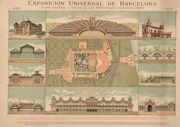 Keywords: Expo Barcelona 1888.jpg es Exposición Universal de Barcelona 1888 plano general y vistas de las principales construcciones http //cartotecadigital icc cat/cdm/singleitem/collection/catalunya/id/3473 author 1888 1888 Barcelona Universal Exposition PD-old |