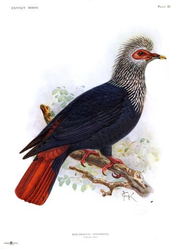 | Keywords: Extinctbirdsatte00roth 0325a.jpg en The Mauritius Blue Pigeon or Pigeon Hollandais Alectroenas nitidissima1 is an extinct species of pigeon formerly endemic to Mauritius fr Le Founingo hollandais Alectroenas nitidissima était un pigeon mauricien appartenant à la famille des columbidae et à la sous-famille des treroninae de Die Mauritius-Fruchttaube Alectroenas nitidissima ist eine ausgestorbene Taubenart aus der Gattung der Blauen Fruchttauben Alectroenas Sie war endemisch auf Mauritius es La paloma azul de Mauricio es una especie de paloma extinta que desapareció en los años 30 del siglo XIX debido a la introducción de especies invasoras por el hombre en su hábitat Era un endemismo de la isla de Mauricio pt O pombo-azul Alectroenas nitidissima viveu nas ilhas Mauricias e ilhas Mascarenhas ja モーリシャスルリバト 学名:Alectroenas mitidissima は ハト目ハト科に属する鳥類の 種 インド洋西部のモーリシャス島に生息していたが すでに絶滅した 別名ブルーピジョン なお 近縁の種にセーシェルルリバト Alectroenas pulcherrima ロドリゲスルリバト Alectroenas rodericana の2種があったが こちらもすでに絶滅している zh 毛里裘斯藍鳩(Alectroenas nitidissima),又名馬島藍鳩,是毛里裘斯已滅絕的鴿 牠 呈白色 深藍色及紅色,令皮埃爾·索納拉特(Pierre Sonnerat)聯想起荷蘭 旗 Extinct birds an attempt to unite in one volume a short account of those birds which have become extinct in historical times that is within the last six or seven hundred years to which are added a few which still exist but are on the verge of extinction By Lionel Walter Rothschild 2nd Baron Rothschild 8 February 1868 27 August 1937 http //www archive org/details/extinctbirdsatte00roth Creator John Gerrard Keulemans 1907 Not in copyright Public Domain Original PD-old-100 Extinct Birds Rothschild book 22 Alectroenas nitidissima |